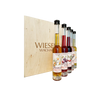 Köstliche Wieser-Marille in den unterschiedlichsten Formen in der schönen Geschenkbox aus Holz: 1x 0,2 l Marille Classic Schnaps1x 0,2 l Marillen Liqueur1x 0,2 l Marillen Nektar1x 235 g Marillen Marmelade